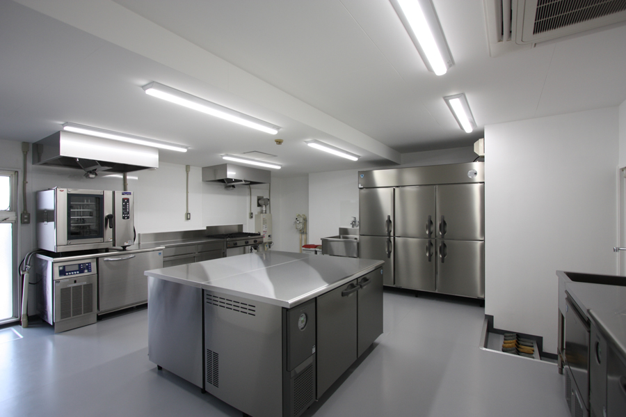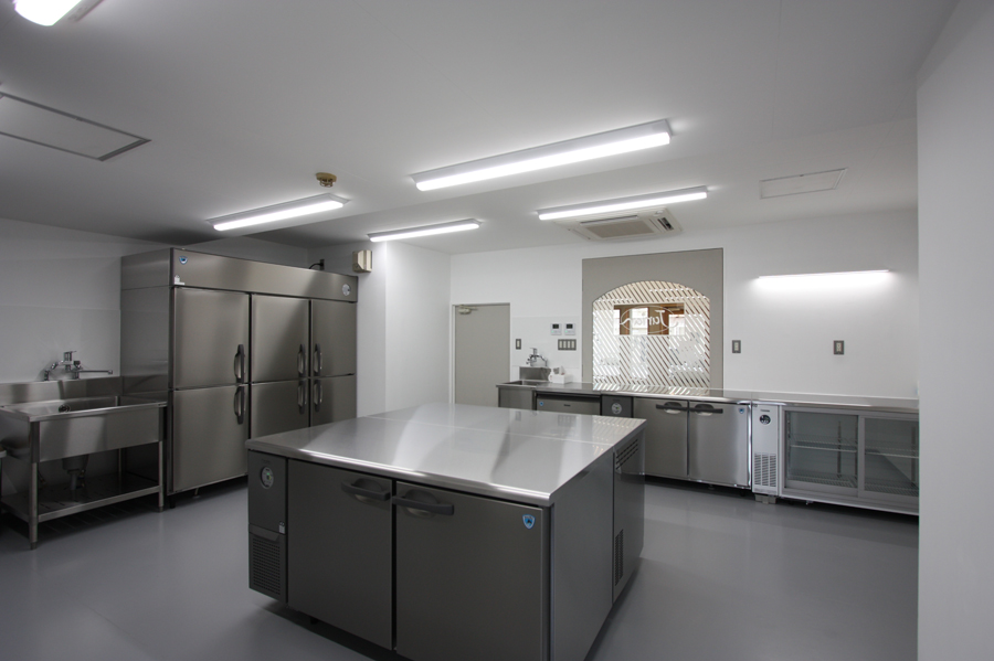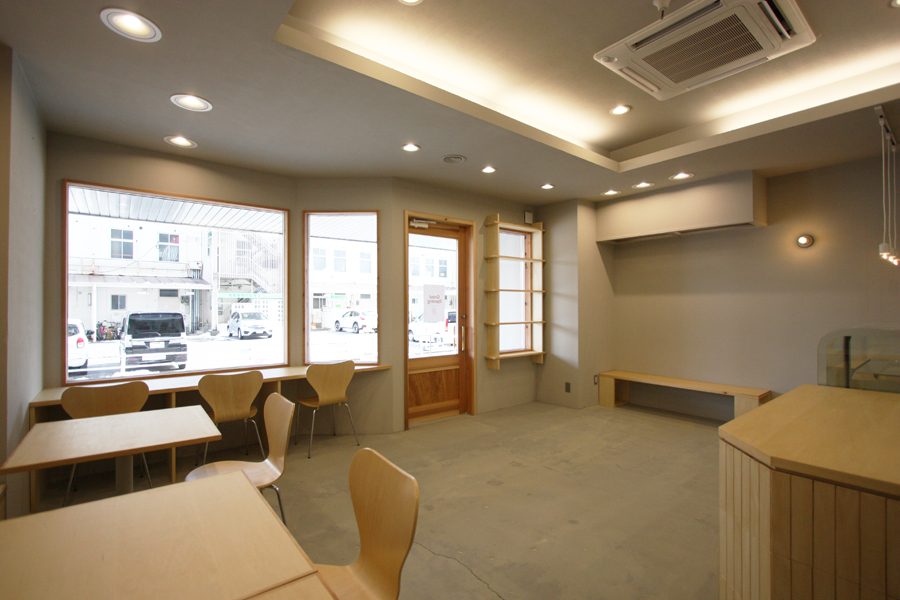 店名を継承するということで、建築もファサードの形状や店舗と厨房の間の窓ガラス等、かつてのお店の名残を残しつつ改修しています。全く別のお店ではあるのですが、パン屋の時代に通い詰めた方にとっては懐かしさを感じるのかもしれません。元々使われていた什器を再利用して、新たに製作した家具と同じ仕上げにすることで統一感のある空間になりました。