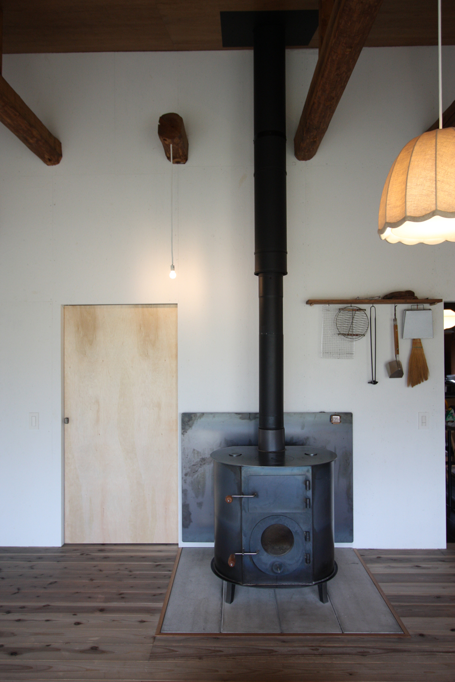 今回は主にリビングの改修で、念願の薪ストーブを設置しました。薪ストーブはイエルカストーブの「どんぐり」です。長野県中川村で作られています。我が家の薪は廃材と農家さんに頂いたリンゴや栗の薪で、廃材は針葉樹なので、針葉樹も燃やせるストーブを探していました。イエルカストーブに決めた理由はやっぱりデザインかなぁ。使っていない時も素敵です。